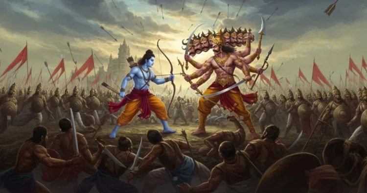 ഇന്ദ്രനെ ജയിച്ച മേഘനാദനും കൈലാസം വിറപ്പിച്ച താനും ജീവിച്ചിരിക്കുമ്പോള് വിജയം സന്ദിഗ്ധമല്ല എന്ന വിശ്വാസം രാവണനില് രൂഢമൂലമായിരുന്നു.
