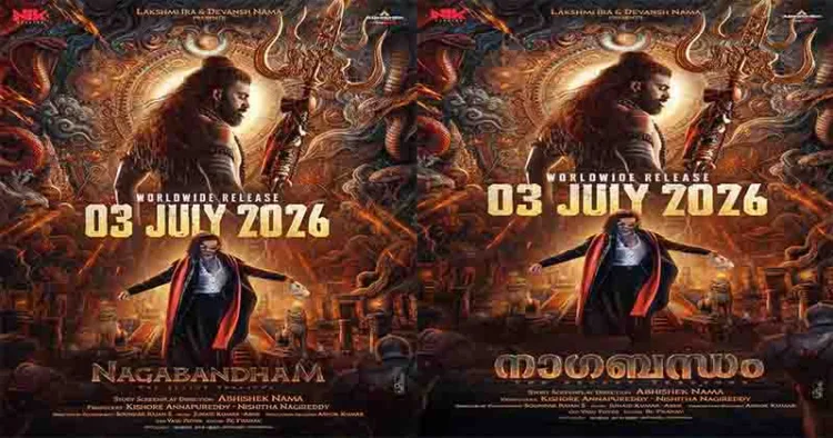 അഭിഷേക് നാമ രചിച്ചു സംവിധാനം ചെയ്യുന്ന പാൻ ഇന്ത്യൻ തെലുങ്ക് ചിത്രമായ നാഗബന്ധത്തിന്റെ ആഗോള റിലീസ് തീയതി പുറത്ത്. 2026, ജൂലൈ 3 ന് ആണ് ചിത്രം ആഗോള തലത്തിൽ തീയേറ്ററുകളിൽ എത്തുക. ചിത്രത്തിന്റെ ഒരു മാസ് പോസ്റ്റർ പുറത്ത് വിട്ട് കൊണ്ടാണ് റിലീസ് തീയതി പ്രഖ്യാപിച്ചത്. അടുത്തിടെ ചിത്രത്തിലെ “നമോ രേ” എന്ന ഗാനവും പുറത്ത് വന്നിരുന്നു. എൻഐകെ സ്റ്റുഡിയോസ്, അഭിഷേക് പിക്ചേഴ്സ് എന്നിവയുടെ ബാനറിൽ കിഷോർ അന്നപുറെഡ്ഡി, നിഷിത നാഗിറെഡ്ഡി എന്നിവർ ചേർന്ന് നിർമ്മിക്കുന്ന ചിത്രം അവതരിപ്പിക്കുന്നത് ലക്ഷ്മി ഇറയും, ദേവാൻഷ് നാമയും ചേർന്നാണ്. സഹനിർമ്മാതാവ് താരക് സിനിമാസ്.