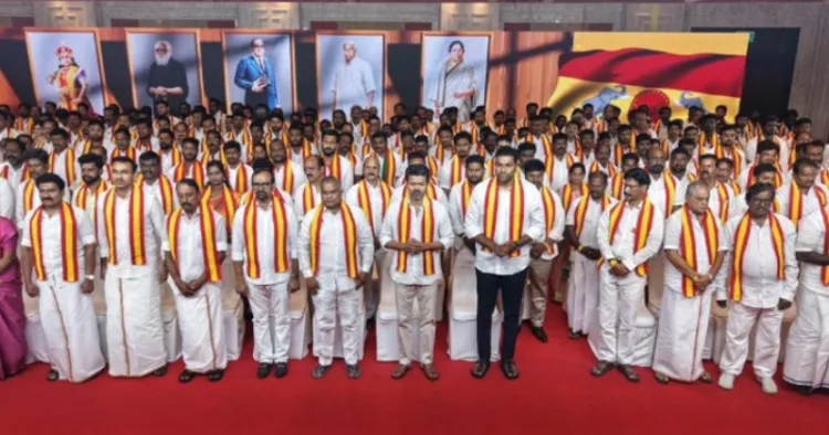 മത്സരം ടിവികെയും ഡിഎംകെയും തമ്മിൽ മാത്രമാണെന്നും വിജയ് പ്രഖ്യാപിച്ചു. ബാലറ്റിൽ ‘സി ജോസഫ് വിജയ്’ എന്ന പേരാകും ഉപയോഗിക്കുകയെന്ന് അദ്ദേഹം വ്യക്തമാക്കി.