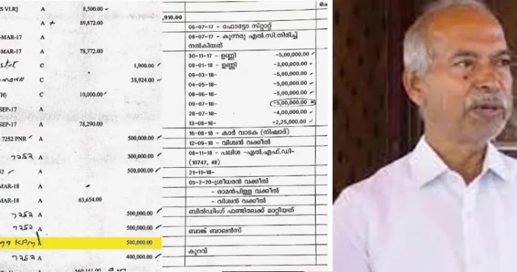 2018 ജൂലൈ മാസം ഒമ്പതാം തീയതി പയ്യന്നൂര്‍ റൂറല്‍ ബാങ്ക് മെയിന്‍ ബ്രാഞ്ചിലുള്ള, ധീര രക്തസാക്ഷി സഖാവ് ധനരാജ് കുടുംബ സഹായനിധിയുടെ അക്കൗണ്ടില്‍ നിന്ന് 5 ലക്ഷം രൂപ അന്നത്തെ ഏരിയ സെക്രട്ടറിയുടെ പേഴ്‌സണല്‍ അക്കൗണ്ടിലേക്ക് മാറ്റിയതിന്റെ തെളിവ് ഞാന്‍ പൊതുസമക്ഷം വയ്‌ക്കുകയാണ്.