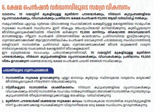 70 കഴിഞ്ഞവർക്ക്, വിധവകൾക്ക്, നിർദ്ധന ഗൃഹനാഥകൾക്ക് മാസം 3000 രൂപ ക്ഷേമ പെൻഷൻ, അതത് മാസത്തിൽ മുടങ്ങാതെ