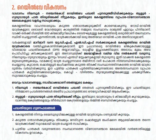 മെട്രോ ശ്രീധരൻ വിഭാവനം ചെയ്ത റയിൽ പദ്ധതികളാണിവയുടെ അടിത്തറ. അതിനാൽ,എൻഡിഎ അധികാരത്തിൽവന്നാൽ പദ്ധതി ഉറപ്പ്്.