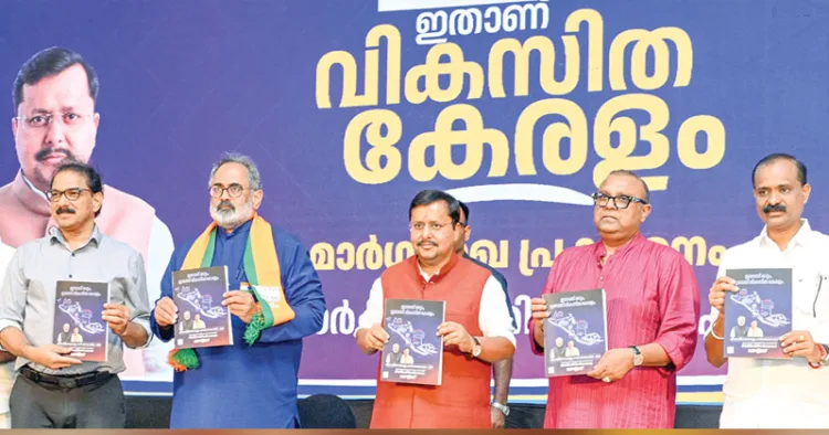 തിരുവനന്തപുരത്തു നടന്ന ചടങ്ങില് ബിജെപി ദേശീയ അധ്യക്ഷന് നിതിന് നബീന് ആണ് മാര്ഗരേഖ പുറത്തിറക്കിയത്. സമൂഹത്തിലെ ഉന്നതരും വിദഗ്ധരും മുതിര്ന്ന പൗരന്മാരും നിറഞ്ഞ പ്രൗഢ സദസിനു മുന്നിലാണ് മാര്ഗ രേഖ അവതരിപ്പിച്ചത്. ബിജെപി സംസ്ഥാന അധ്യക്ഷന് രാജീവ് ചന്ദ്രശേഖര്, ട്വന്റി20 ചെയര്മാന് സാബു ജേക്കബ് എന്നിവര് എന്ഡിഎയുടെ മാര്ഗ രേഖ വിശദീകരിച്ചു. എന്ഡിഎ വൈസ് ചെയര്മാന് തുഷാര് വെള്ളാപ്പള്ളി ചടങ്ങില് സംസാരിച്ചു.
