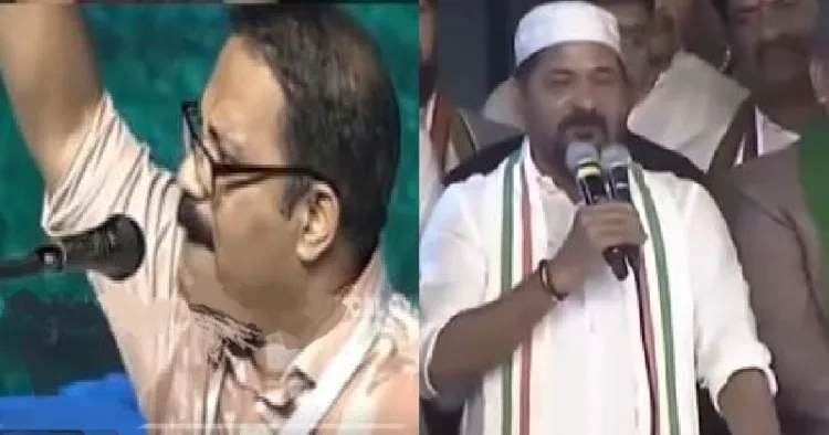 മറ്റൊന്ന് തെലുങ്കാന മുഖ്യമന്ത്രിയായ രേവന്ത് റെഡ്ഡിയുടെ പ്രസംഗമാണ്. മുസ്ലിം തൊപ്പി ധരിച്ചുള്ള രേവന്ത് റെഡ്ഡിയുടെ ഈ പ്രസംഗം വിവാദമായിരുന്നു. കോണ്‍ഗ്രസ് എന്നാല്‍ മുസ്ലിങ്ങളാണ്. മുസ്ലിങ്ങളെന്നാല്‍ കോണ്‍ഗ്രസും എന്നതായിരുന്നു ഹൈദരാബാദിലെ ജൂബിലി ഹില്‍സില്‍ രേവന്ത് റെഡ്ഡി നടത്തിയ പ്രസംഗം. ഈ വീഡിയോയും കേരളത്തില്‍ കോണ്‍ഗ്രസിനെയും വി.ഡി. സതീശനെയും ഉത്തരം മുട്ടിക്കുന്നു.