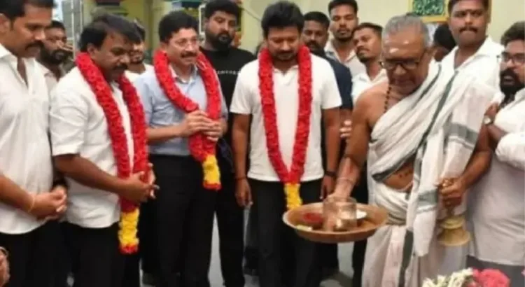 തനിക് ഹിന്ദുമതത്തിൽ വിശ്വാസമില്ലെന്ന് പല തവണ പറഞ്ഞിട്ടുള്ള വ്യക്തിയാണ് കരുണാനിധിയുടെ ചെറുമകനായ ഉദയനിധി സ്റ്റാലിൻ . എന്നിട്ടാണ് കഴിഞ്ഞ ദിവസം അദ്ദേഹം തന്റെ മണ്ഡലത്തിലെ സെഞ്ചെനിയമ്മൻ ക്ഷേത്രത്തിൽ പൂജ നടത്താൻ എത്തിയത്. പാർലമെന്റ് അംഗം ദയാനിധി മാരനും അദ്ദേഹത്തോടൊപ്പം ഉണ്ടായിരുന്നു.