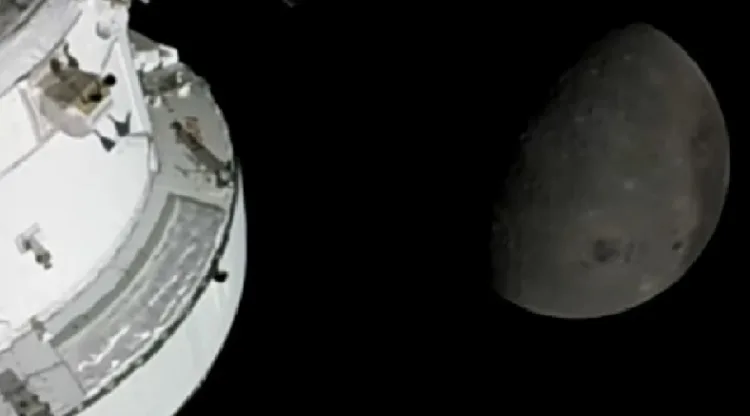 ഇന്ത്യൻ സമയം പുലർച്ചെ 4.32നാണ് ഒറയോണ് പേടകം ചന്ദ്രന്റെ ഏറ്റവും അടുത്ത് എത്തിയത്. ഭൂമിയിലേക്ക് ആദ്യം സന്ദേശമയച്ചത് ക്രിസ്റ്റീന കുക്കാണ്. പേടകം ചന്ദ്രന്റെ ഗുരുത്വാകർഷണ ബലത്തിന്റെ സ്വാധീനത്തിലേക്ക് പ്രവേശിച്ചത് ഇന്നാണ്. 1972ന് ശേഷം ഇതാദ്യമായിട്ടാണ് മനുഷ്യൻ വീണ്ടും ചാന്ദ്ര ഗുരുത്വസ്വാധീന മേഖലയിൽ എത്തിയത്. തുടർന്ന് ചന്ദ്രന്റെയുമപ്പുറത്ത് നിന്ന് ദൗത്യസംഘം ചന്ദ്രനെയും ഭൂമിയെയും നോക്കിക്കണ്ടു. ഒറയോൺ ചന്ദ്രന്റെ പിന്നിലേക്ക് പോയതിനാൽ നാൽപ്പത് മിനുട്ടോളം പേടകവും ഭൂമിയും തമ്മിൽ ബന്ധമുണ്ടായില്ല. ചന്ദ്രന്റെ അപ്പുറത്ത് നിന്ന് ഉദയവും അസ്തമയവും സംഘം കണ്ടു.