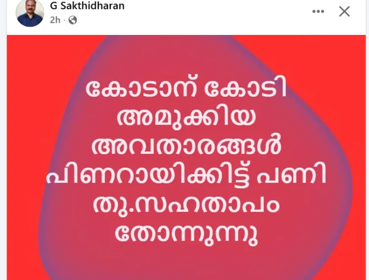 തിരുവനന്തപുരം: പിണറായി യുഗത്തിന് അന്ത്യം കുറിക്കാനും പിണറായിയുടെ രഹസ്യ പദ്ധതിക്ക് തടയിടാനും സിപിഎമ്മിൽനിന്നുതന്നെ വൻ ‘പണി’ എന്ന് സൂചനകൾ. സിപിഎമ്മിന്റെ പല തെരഞ്ഞെടുപ്പ് മാനേജിങ് സംഘത്തിലെ അംഗമായിരുന്ന, ദേശാഭിമാനി മുൻ ഡെപ്യൂട്ടി എഡിറ്റർ ജി. ശക്തിധരൻ ഫേസ് ബുക്കിൽ പോസ്റ്റ് ചെയ്ത രണ്ടേ രണ്ടു വാക്യങ്ങൾ വിരൽ ചൂണ്ടുന്നത് സിപിഎമ്മിൽ നടന്ന വൻ കാലുവാരലിന്റെ കാര്യങ്ങളിലേക്ക്. എഫ്ബി പോസ്റ്റിലെ വരികൾ ഇതാണ്: ”കോടാനുകോടി അമുക്കിയ അവതാരങ്ങൾ പിണറായിക്കിട്ട് പണിതു. സഹതാപം തോന്നുന്നു” എന്ന്.