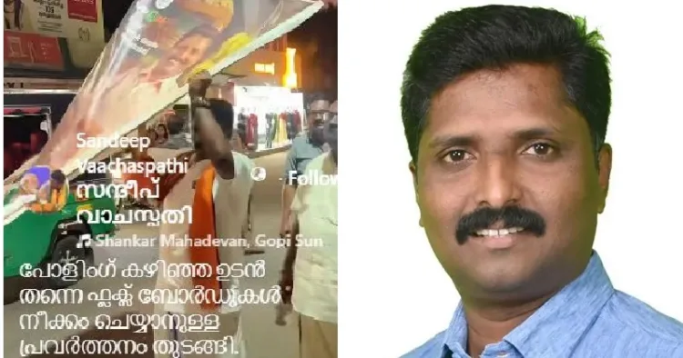 ആലപ്പുഴ ജില്ലയിലെ ഹരിപ്പാട് മണ്ഡലത്തിലെ ബിജെപി സ്ഥാനാര്ത്ഥിയായ സന്ദീപ് വാചസ്പതി ബിജെപിയുടെ വിജയസാധ്യതാപട്ടികയില് ഉള്ള ഒരാളാണ്. പക്ഷെ പോളിംഗ് സമയം അവസാനിച്ച ഉടന് സന്ദീപ് വാചസ്പതി ചെയ്തത് എന്താണെന്നോ? തനിക്ക് വേണ്ടി ഹരിപ്പാടും പരിസരപ്രദേശങ്ങളിലും ഉയര്ത്തിയ കൂറ്റന് കട്ടൗട്ടുകളും പോസ്റ്ററുകളും എടുത്തുമാറ്റുന്ന പണിയില് ഏര്പ്പെടുകയായിരുന്നു സന്ദീപ് വാചസ്പതി. ഒരു സ്ഥാനാര്ത്ഥി നിര്ബന്ധമായും ചെയ്തിരിക്കേണ്ട എന്നാല് യാതൊരു പ്രതിഫലവും ലഭിക്കാത്ത ജോലി.