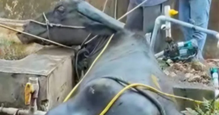 ഗേറ്റ് തുറന്നുകിടന്ന വീട്ടിലെ വാട്ടര്‍ ടാങ്കില്‍ പോത്ത് വീണു.പിന്നാലെയെത്തിയ ഉടമകള്‍ പോത്തിനെ കയറിട്ട് വലിച്ചു കയറ്റി. പോത്തിനെ പിടിച്ചു കെട്ടാന്‍ ശ്രമിച്ച ഉടമകളിലൊരാളുടെ കൈയ്‌ക്ക് പരിക്കേറ്റു.