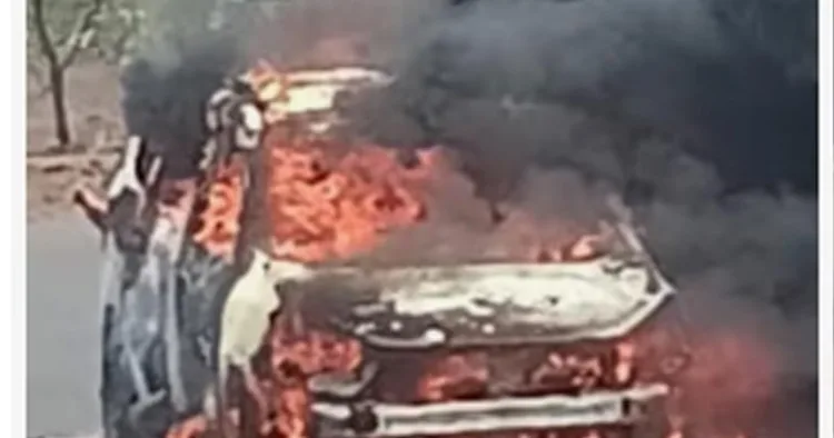 നിമിഷങ്ങള്ക്കകം തീ ആളിപ്പടര്ന്ന് കാര് പൂര്ണമായും കത്തിയമര്ന്നു. നാട്ടുകാരും വിവരമറിഞ്ഞെത്തിയ അഗ്നിരക്ഷാ സേനയും ചേര്ന്നാണ് തീ നിയന്ത്രണവിധേയമാക്കിയത്. ഷോര്ട്ട് സര്ക്യൂട്ടാണ് അപകടകാരണമെന്നാണ് പ്രാഥമിക നിഗമനം.
