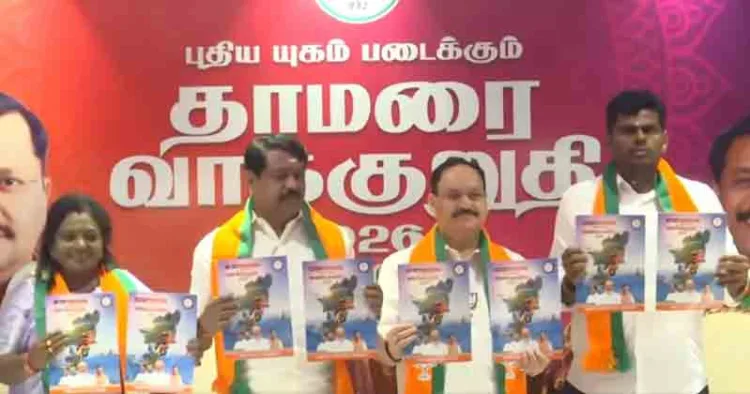 ചെന്നൈയിൽ ബിജെപിയുടെ മുതിർന്ന നേതാവ് ജെ പി നദ്ദയാണ് രേഖ പുറത്തിറക്കിയത്. തമിഴ്നാട് ബിജെപി പ്രസിഡന്റ് നൈനാർ നാഗേന്ദ്രൻ, ബിജെപി നേതാക്കളായ കെ അണ്ണാമലൈ, തമിഴിസൈ സൗന്ദരരാജൻ എന്നിവരുൾപ്പെടെ പാർട്ടിയുടെ മറ്റ് പ്രധാന നേതാക്കളും ചടങ്ങിൽ പങ്കെടുത്തു. തമിഴ് പുതുവത്സര ദിനത്തിൽ പ്രകടന പത്രിക പുറത്തിറക്കുന്നത് “മംഗളകരം” എന്ന് പറഞ്ഞ നദ്ദ ബി.ആർ. അംബേദ്കറുടെ 150-ാം ജന്മവാർഷികം കൂടിയാണ് ഈ ദിനം എന്നും ഓർമ്മിപ്പിച്ചു.