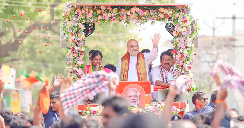 തമിഴ്നാട് മൊടകുറിച്ചി നിയമസഭാ മണ്ഡലത്തില് ബിജെപി നടത്തിയ റോഡ് ഷോയില് പങ്കെടുക്കാനെത്തിയ കേന്ദ്ര ആഭ്യന്തരമന്ത്രി അമിത് ഷാ ജനങ്ങളെ അഭിവാദ്യം ചെയ്യുന്നു
