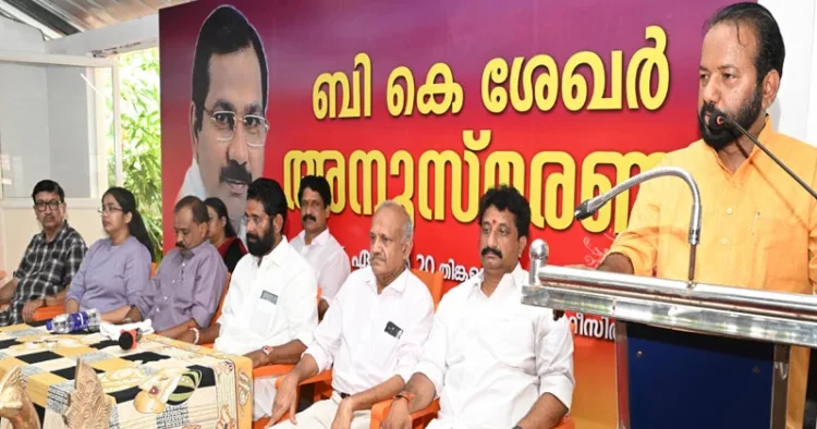 ബി ജെ പി- മോദി വിരുദ്ധതയുടെ തിമിരം ബാധിച്ച കേരളത്തിലെ ഇടതു വലത് എംപിമാര്‍ കേരളത്തിലെ ജനങ്ങളോട് വലിയ ക്രൂരതയാണ് കാണിച്ചത്. ഒരു ഉത്തമ രാഷ്‌ട്രീയ പ്രവര്‍ത്തകനായിരുന്ന ബി കെ ശേഖറിന്റെ പ്രവര്‍ത്തനങ്ങള്‍ പില്‍ക്കാലത്തെ ബിജെപി യുടെ വിജയങ്ങള്‍ക്കുള്ള അടിത്തറ ആയിരുന്നു. കേരളത്തിലെ ബിജെപിയുടെ മുഖമായിരുന്നു ബി.കെ.ശേഖര്‍ എന്നും അദ്ദേഹത്തിന്റെ വേര്‍പാട് പാര്‍ട്ടിക്ക് നികത്താനാവാത്ത നഷ്ടമാണെന്നും അഡ്വ.എസ്. സുരേഷ് കൂട്ടിച്ചേര്‍ത്തു.ബിജെപി സംസ്ഥാന ഉപാദ്ധ്യക്ഷനും തിരുവനന്തപുരം ജില്ലാ അദ്ധ്യക്ഷനുമായിരുന്ന ബി കെ ശേഖര്‍ വിദ്യാര്‍ത്ഥി കാലം മുതല്‍ക്കേയുള്ള തന്റെ മാതൃകാ നേതാവാണന്ന് തിരുവനന്തപരം നഗരസഭാ മേയര്‍ വി വി രാജേഷ് പറഞ്ഞു.