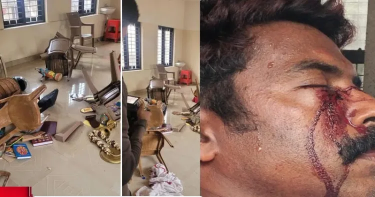 തിരുവനന്തപുരം: കുമാരാരാമം ഇടപ്പഴനി ബാലസുബ്രഹ്മണ്യസ്വാമിക്ഷേത്രത്തില് പൊലീസ് അതിക്രമം. പൊലീസ് ക്ഷേത്രമതപാഠശാല യോഗത്തില് പങ്കെടുക്കുകയായിരുന്ന ക്ഷേത്രസംരക്ഷണസമിതി പ്രവര്ത്തകരെ അതിക്രൂരമായി മര്ദ്ദിക്കുകയും മതപാഠശാല തല്ലിത്തകര്ക്കുകയും ചെയ്തു. വേദഗ്രന്ഥങ്ങള് വലിച്ചെറിഞ്ഞു. മതപാഠശാലയ്ക്കുള്ളില് വച്ചിരുന്ന ദേവീദേവന്മാരുടെ ചിത്രങ്ങളും ബിംബങ്ങളും തല്ലിത്തകര്ത്തു.ശ്രീകൃഷ്ണ വിഗ്രഹവും മതപാഠശാലയിലെ പുസ്തക അലമാരകളും തകര്ത്തു .