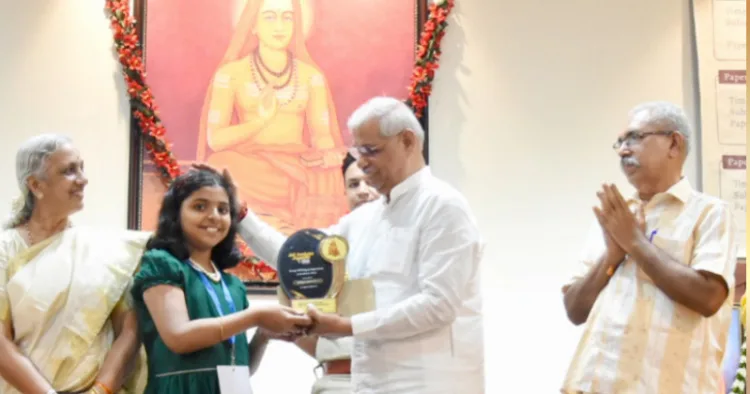 തിങ്കളാഴ്ച പിറവം വെളിയനാട് ചിന്മയ ആദിശങ്കര നിലയത്തില് നടന്ന പരിപാടിയില് ഗവര്ണര് രാജേന്ദ്ര വിശ്വനാഥ് ആര്ലേക്കര് വിദ്യക്ക് സമ്മാനം നല്കി.