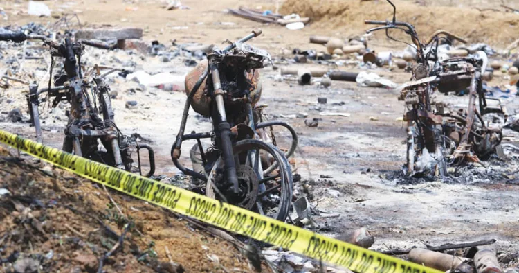 ദുരന്ത സ്ഥലത്തുïായിരുന്ന നാലുപേരെ കാണാതായിട്ടുï്. സ്‌ഫോടനത്തെ തുടര്‍ന്ന് ചൊവ്വാഴ്ച രാത്രി നിര്‍ത്തിവെച്ച തിരച്ചില്‍ ബുധനാഴ്ച പുലര്‍ച്ചെതന്നെ പു