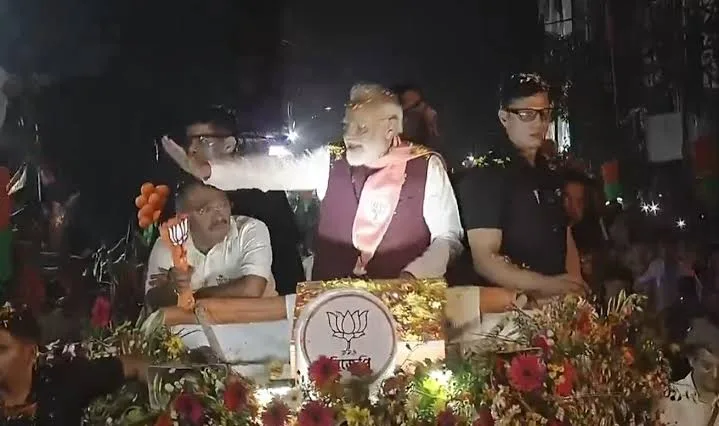 റോഡ്ഷോയ്ക്കിടെ പ്രധാനമന്ത്രി മോദി പൂക്കളും നേതാവിന്റെ ചിത്രങ്ങളും ബിജെപിയുടെ തിരഞ്ഞെടുപ്പ് ചിഹ്നമായ ‘താമര’യുടെ കട്ടൗട്ടുകളും കൊണ്ട് അലങ്കരിച്ച ഒരു കാവി നിറമുള്ള വാഹനത്തിലാണ് സഞ്ചരിച്ചത്.
