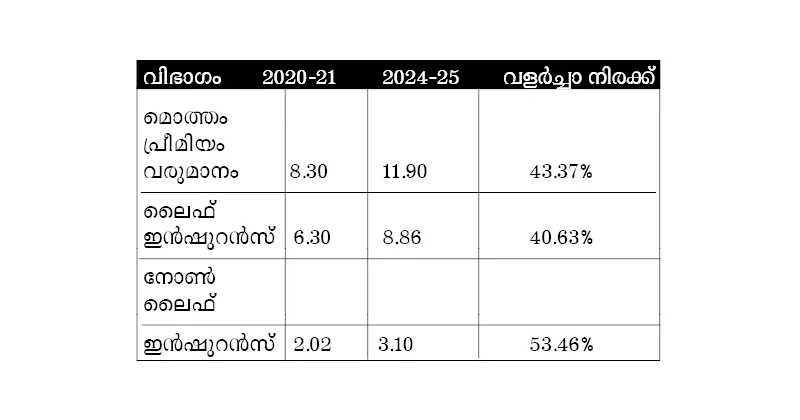 ഇന്‍ഷുറന്‍സ് പ്രീമിയത്തിന്റെ വളര്‍ച്ച (ലക്ഷം കോടി രൂപയില്‍)