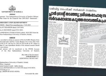 ശ്രീശങ്കരാചാര്യ സംസ്കൃത സര്വകലാശാല: വഴിവിട്ട നടപടിക്കുള്ള സമ്മര്ദം ഫലിച്ചില്ല പ്ലാന് ഗ്രാന്റ് സര്ക്കാര് അനുവദിച്ചു
