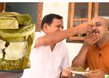 അരുൺ കുമാറിന് പഴയിടം നമ്പൂതിരി വായിൽ വെച്ച് കൊടുത്ത തൃക്കാരപ്പന്റെ പൂവട.