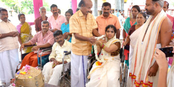 വൈകല്യം തളര്ത്തിയില്ല; വീല്ചെയറില് വിവാഹിതരായി
