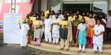 മെഡിക്കല് കോളേജില് നഴ്സുമാര് വായ്മൂടിക്കെട്ടി പ്രതിഷേധിച്ചു