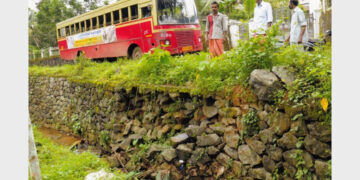 തെക്കുംഭാഗം ആനക്കയം റോഡിന്റെ സംരക്ഷണഭിത്തി അപകടത്തില്