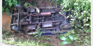 മിനിലോറി തോട്ടിലേക്ക് മറിഞ്ഞ് രണ്ട് പേര്ക്ക് പരിക്ക്