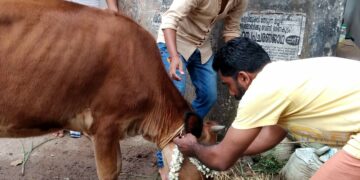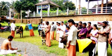Kannur ശ്രീകൃഷ്ണ ജയന്തി ആഘോഷത്തിന്റെ ഭാഗമായി ബാലഗോകുലത്തിന്റെ നേതൃത്വത്തില്കീഴൂര് മഹാവിഷ്ണു ക്ഷേത്ര മുറ്റത്ത് നടന്ന ഗോപൂജ