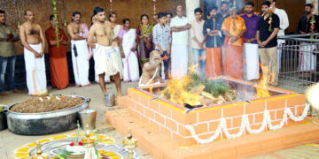 Kannur ചെറുപുഴ ശ്രീ അയ്യപ്പക്ഷേത്രത്തില് മണിയറ പെരിങ്ങോട്ടല്ലത്ത് പത്മനാഭന് തന്ത്രി(ബാംഗ്ലൂര്)യുടെ മുഖ്യകാര്മ്മികത്വത്തില് നടന്ന മഹാഗണപതി ഹോമം