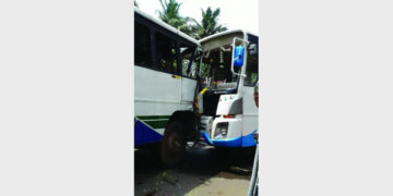 സ്വകാര്യബസുകള് കൂട്ടിയിടിച്ച് നിരവധി പേര്ക്ക് പരിക്ക്