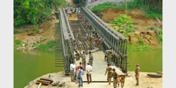 ബെയ്ലി പാലത്തിലൂടെ വാഹനങ്ങള് യാത്ര തുടങ്ങി