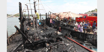 ഗ്യാസ് സിലിണ്ടര് പൊട്ടിത്തെറിച്ച് ബോട്ട് കത്തിനശിച്ചു