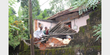 കനത്ത മഴയില് വീടും മതിലും റോഡിലേക്ക് ഇടിഞ്ഞുവീണു