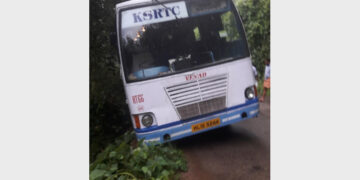 കെഎസ്ആര്ടിസി ബസ് ചരിഞ്ഞു