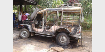വീട്ടുമുറ്റത്ത് നിര്ത്തിയിട്ട വാഹനം കത്തിനശിച്ചു