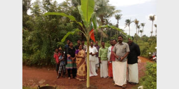 തകര്ന്ന റോഡില് വാഴ നട്ട് ബിജെപി പ്രതിഷേധം