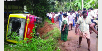 സ്വകാര്യബസ് അപകടത്തില്പ്പെട്ടു 16 പേര്ക്ക് പരിക്ക്