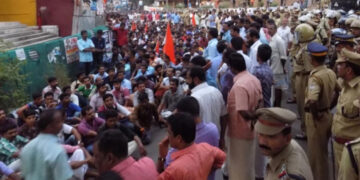 ആര്എസ്എസ് പ്രചാരകനെ പോലീസ് മര്ദ്ദിച്ചതില് വന്പ്രതിഷേധം