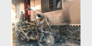 വീടിന് നേരെ സാമൂഹികവിരുദ്ധ അക്രമം; ഇരുചക്രവാഹനം തീവച്ച് നശിപ്പിച്ചു