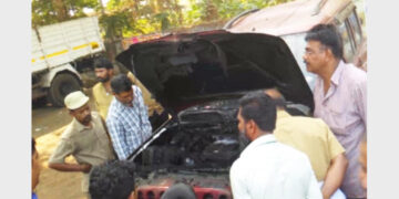 നിര്ത്തിയിട്ട കാറിന് തീപിടിച്ചു