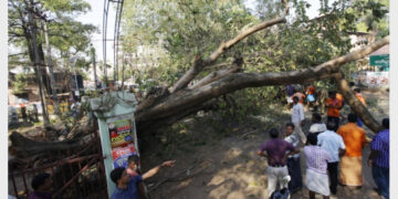 ജില്ലാ ആശുപത്രി വളപ്പിലെ വന്മരം കടപുഴകി; മൂന്നുപേര്ക്ക് പരിക്ക്
