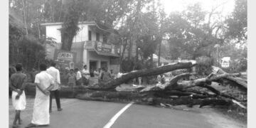 റോഡിലേക്ക് വന്മരം കടപുഴകി; ദുരന്തമൊഴിവായി