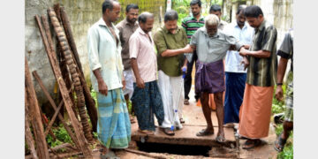 സ്വകാര്യവ്യക്തികള് മതില്കെട്ടി തിരിച്ചു, നാട്ടുകാരെ വലച്ച് റോഡില് മഴവെള്ളക്കുഴി