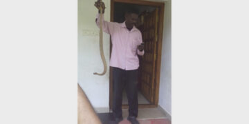 വീട്ടിനുള്ളില് കയറിയ അണലിയെ വാവ സുരേഷ് പിടികൂടി