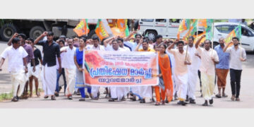 വിവാഹ തട്ടിപ്പ്: പഞ്ചായത്തംഗത്തിന്റെ രാജിക്കായി ബിജെപി ധര്ണ്ണ