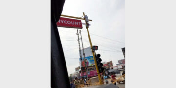 Kannur ട്രാഫിക് സിഗ്നല് പോസ്റ്റുകള് കീഴടക്കി പരസ്യ ബോര്ഡുകള് : സിഗ്നല് പോസ്റ്റിനു മുകളില് കയറി പ്രതിഷേധ സമരം