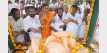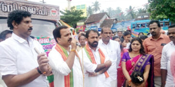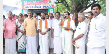 Kannur കൊടിമരജാഥ ഉദ്ഘാടനത്തോടനുബന്ധിച്ച് പയ്യാമ്പലത്ത് സ്വര്ഗീയ മാരാര്ജിയുടെ സ്മൃതികുടീരത്തില് ബിജെപി നേതാക്കള് പുഷ്പാര്ച്ചന നടത്തുന്നു