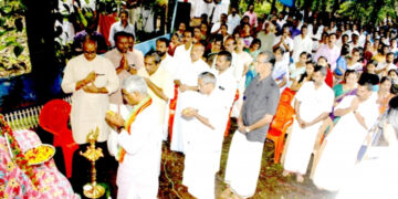 Kannur തില്ലങ്കേരിയില് സിപിഎം അക്രമത്തില് കൊല്ലപ്പെട്ട ആര്എസ്എസ് പ്രവര്ത്തകന് വിനീഷിന്റെ ശ്രദ്ധാഞ്ജലിച്ചടങ്ങില് സംഘപരിവാര് നേതാക്കള് പുഷ്പാര്ച്ചന നടത്തുന്നു