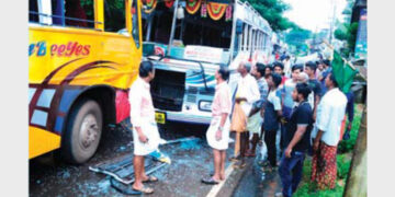 സ്വകാര്യ ബസ്സുകള് കൂട്ടിയിടിച്ച് 35 പേര്ക്ക് പരിക്ക്